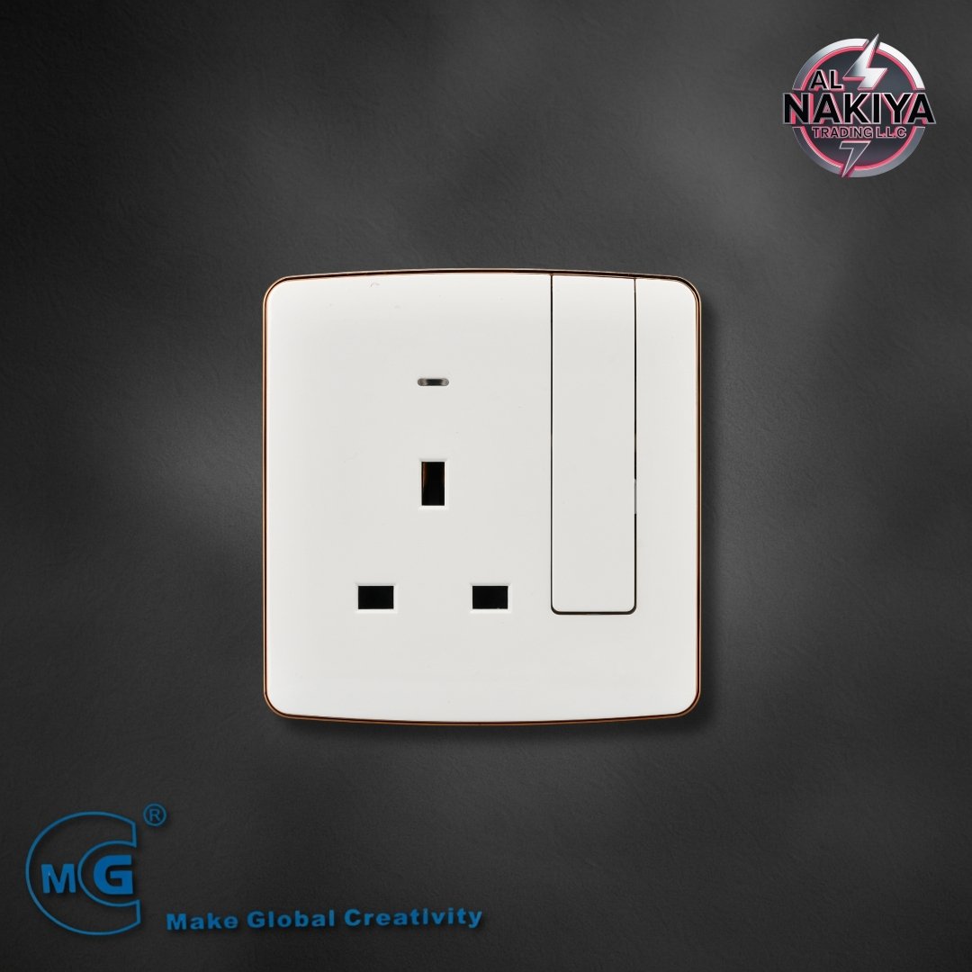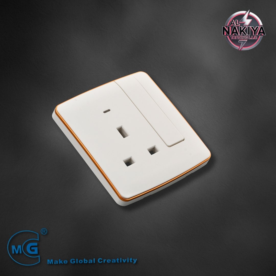 WG 8213SL-B | 13A SOCKET WITH SWITCH AND NEON (BIG BUTTON) WHITE +GOLD | 8 | 10pc/100 |