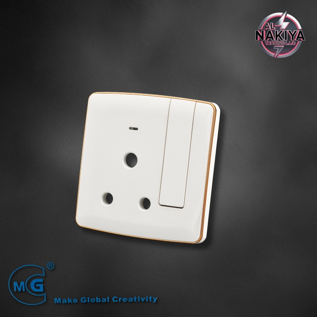 WG 8215 SL-B | 15A SOCKET WITH SWITCH AND NEON (BIG BUTTON) (WHITE+GOLD) | 9 | 10pc/100 |